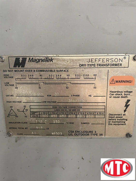 Insulation Class 220C 105 C Rise %IMPED 4.5