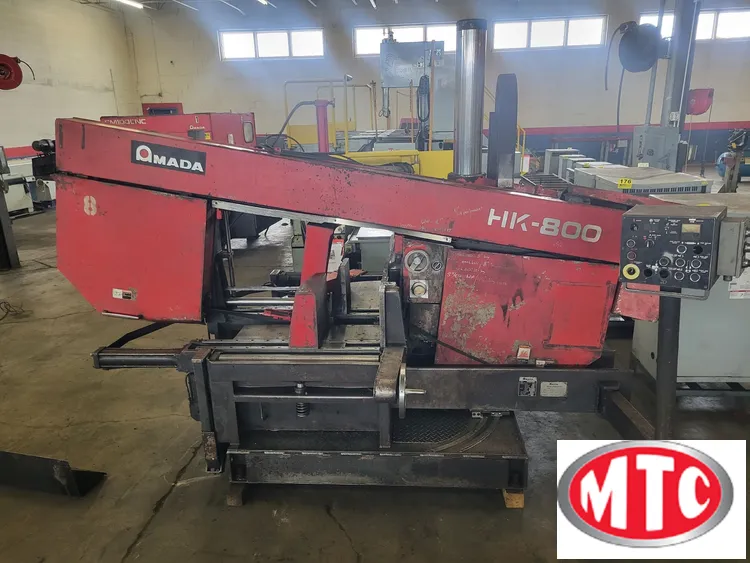 Amada HK-800, Horizontal dual column, Mitering bandsaw, Semi-Automatic, rear hold down, Power swivel, 32" X 23" Capacity at 90 degrees