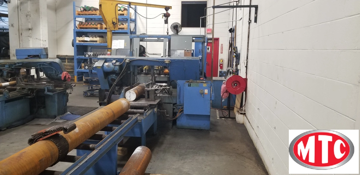Auto material feed, Blade, Coolant system, W.F. Wells patented feed compensation, Parts counter, fresh paint in front and cleaned, Variable speed drive, carbide blade guides, Manuals