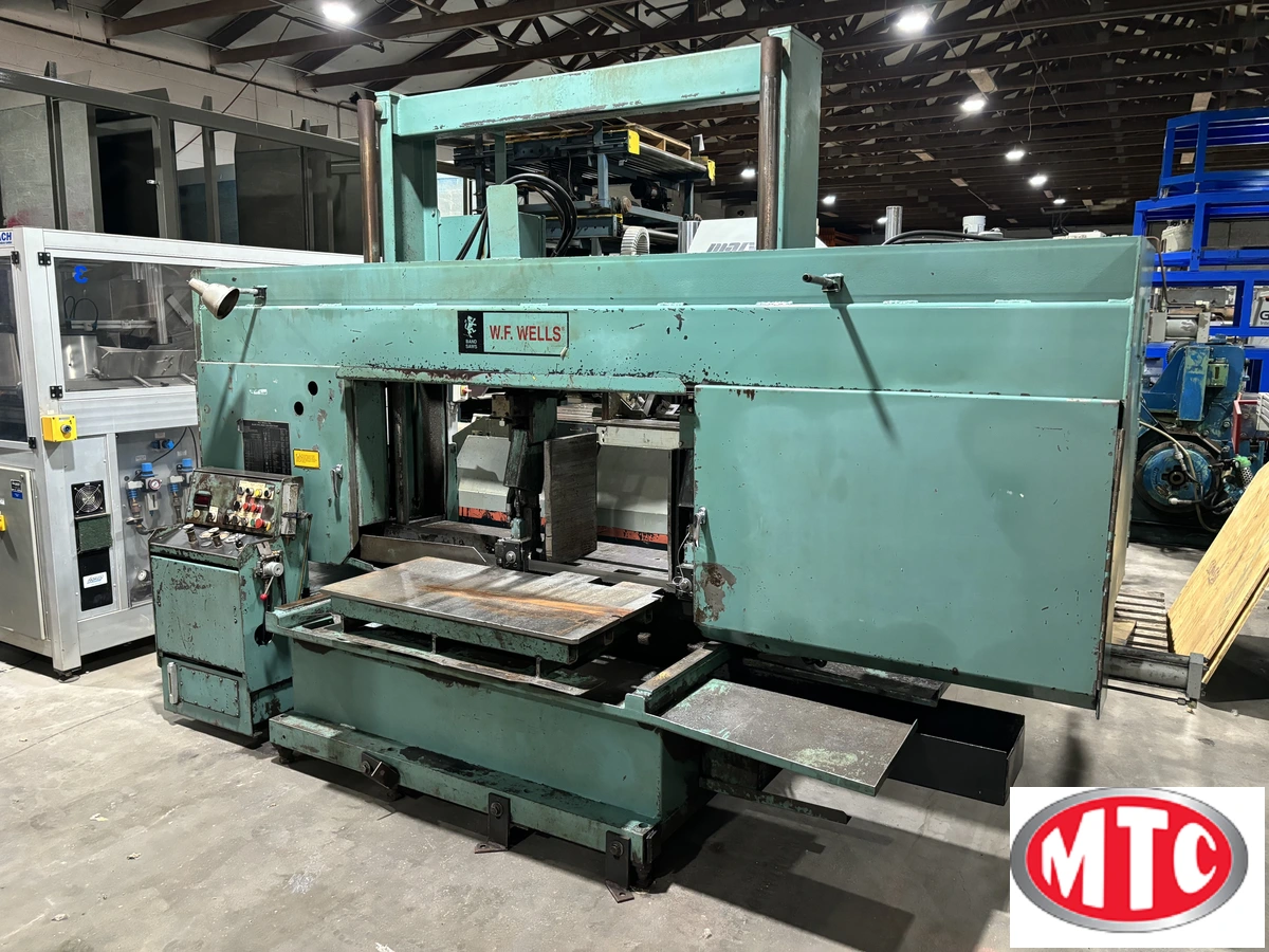 A very nice W. F. WELLS MODEL B-25-2 SEMI-AUTOMATIC HORIZONTAL BAND SAW. recently refurbished, new bushings, switches etc.