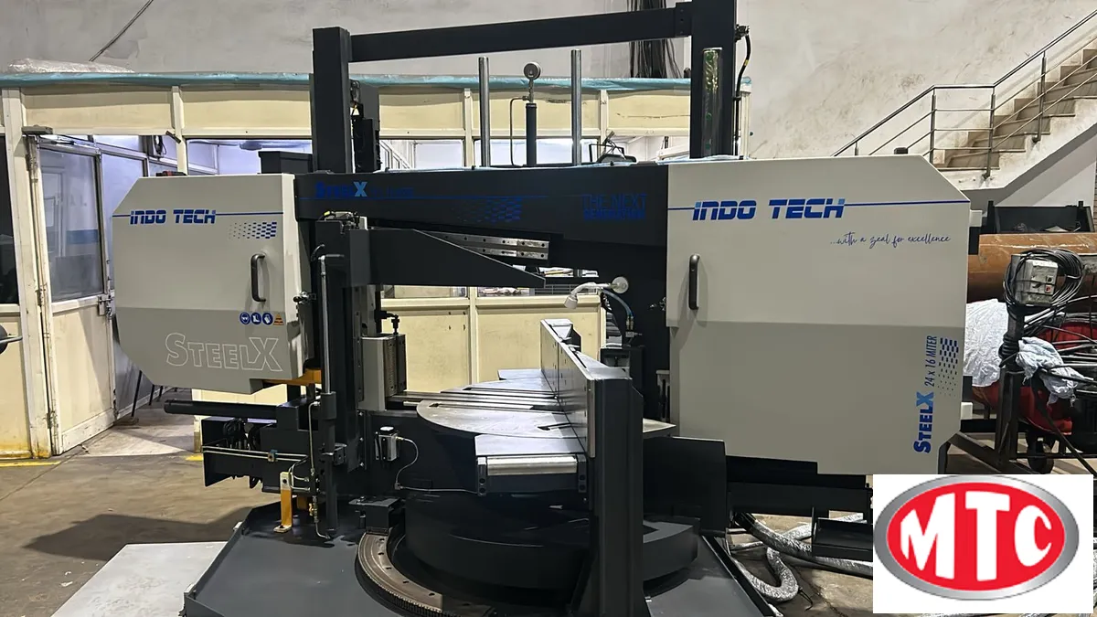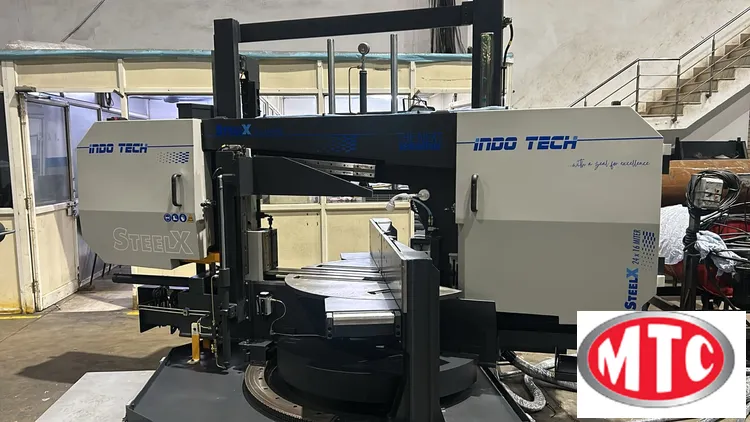 30" x 19" Capacity Dual column, Horizontal, Semi-Automatic, Mitering, Bandsaw, 60 degrees (-) and 45 degrees (+), Hardened and ground linear ways, Powered miter (Swivel) of head, Mist coolant system