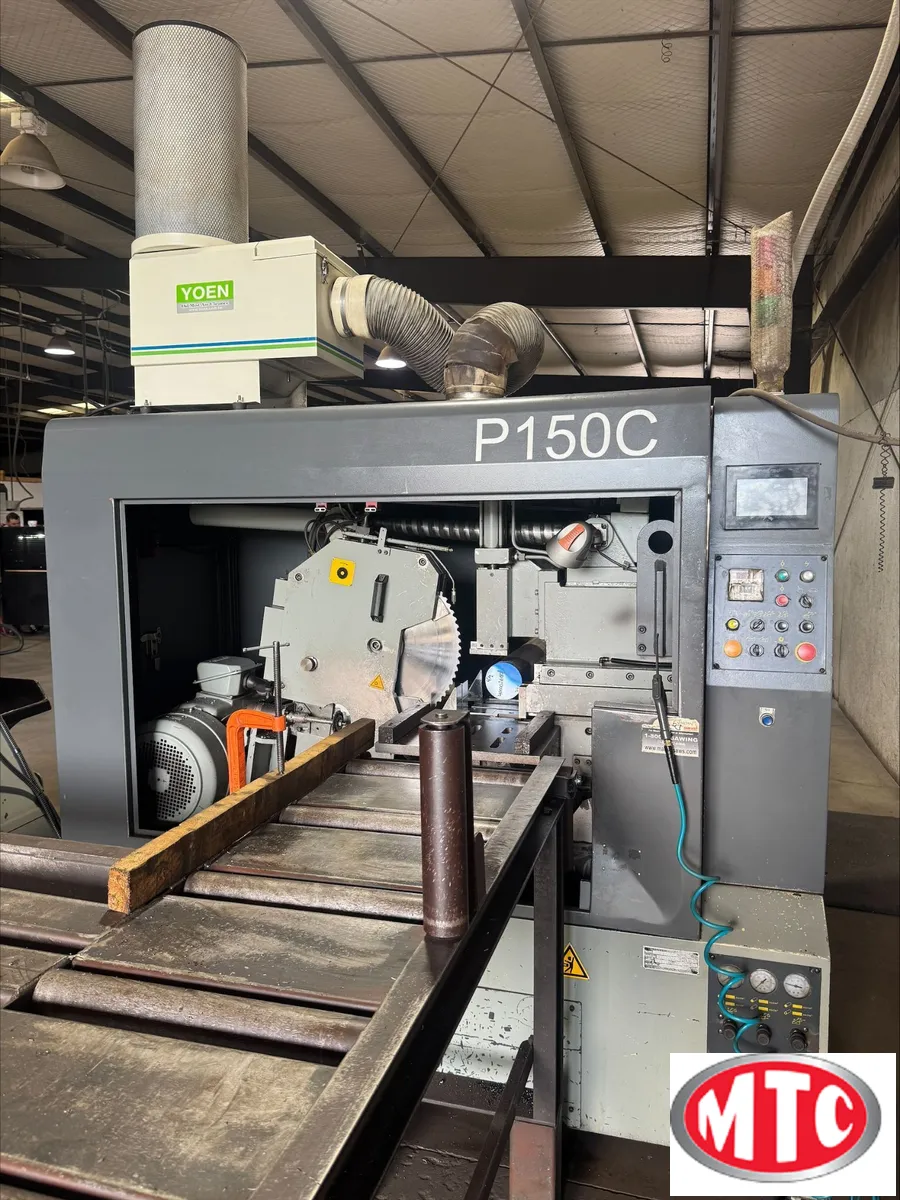 High production CNC cold saw, 2.75" to 5.9" Capacity, 20 HP Blade motor, 5 hp Hydraulics, 30 to 130RPM blade, Servo feed blade and 12' Magazine bar loader