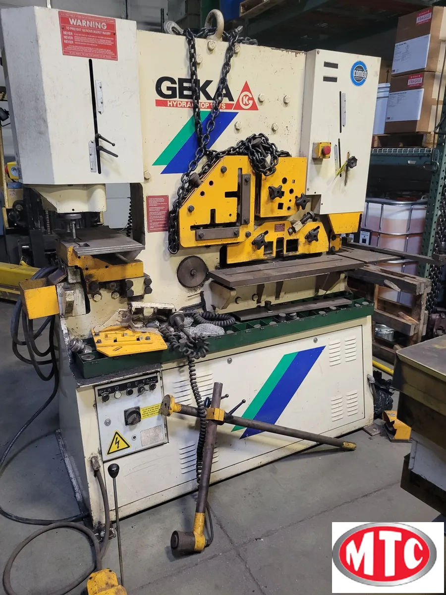 Very good condition Geka Hyrocrop 110 ton ironworker, with tone of tooling and "C" channel blades as well as rod shear angle shear, flat bar shear, coper/notcher and of course punch station, two foot pedals